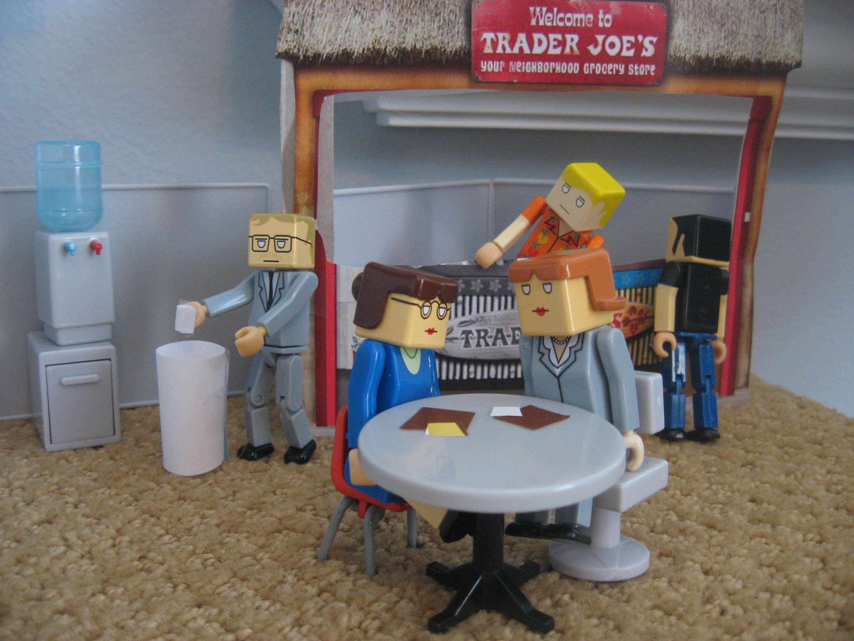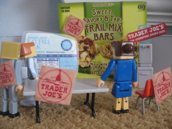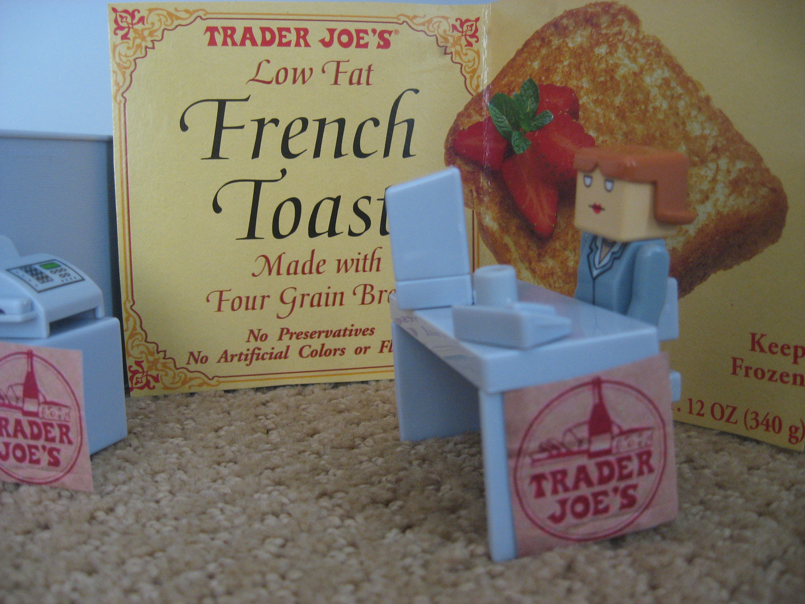Even the cubicles were sponsored. This was difficult for Sue, who was on a strict no-carb diet, and didn’t need to be reminded about Trader Joe’s delicious French toast.