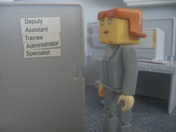 When the employees arrived at work, they found job titles glued to their cube walls.