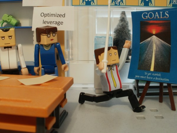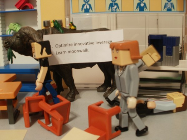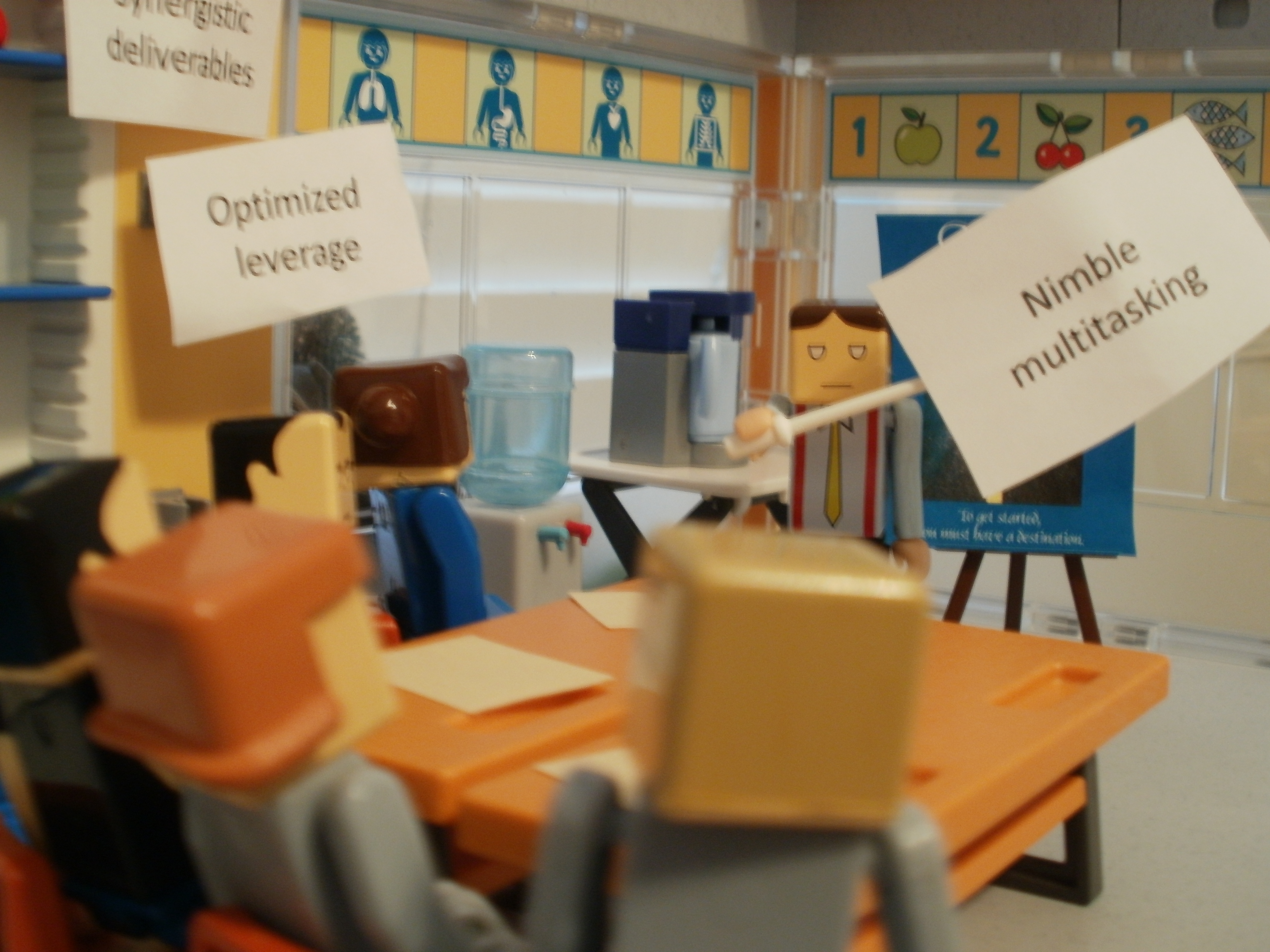Ann presented the group’s “Gap Analysis” summary, but by then Coach Kent had worked himself into a caffeinated frenzy. He couldn’t stop stretching, jogging around and yelling “optimize!”