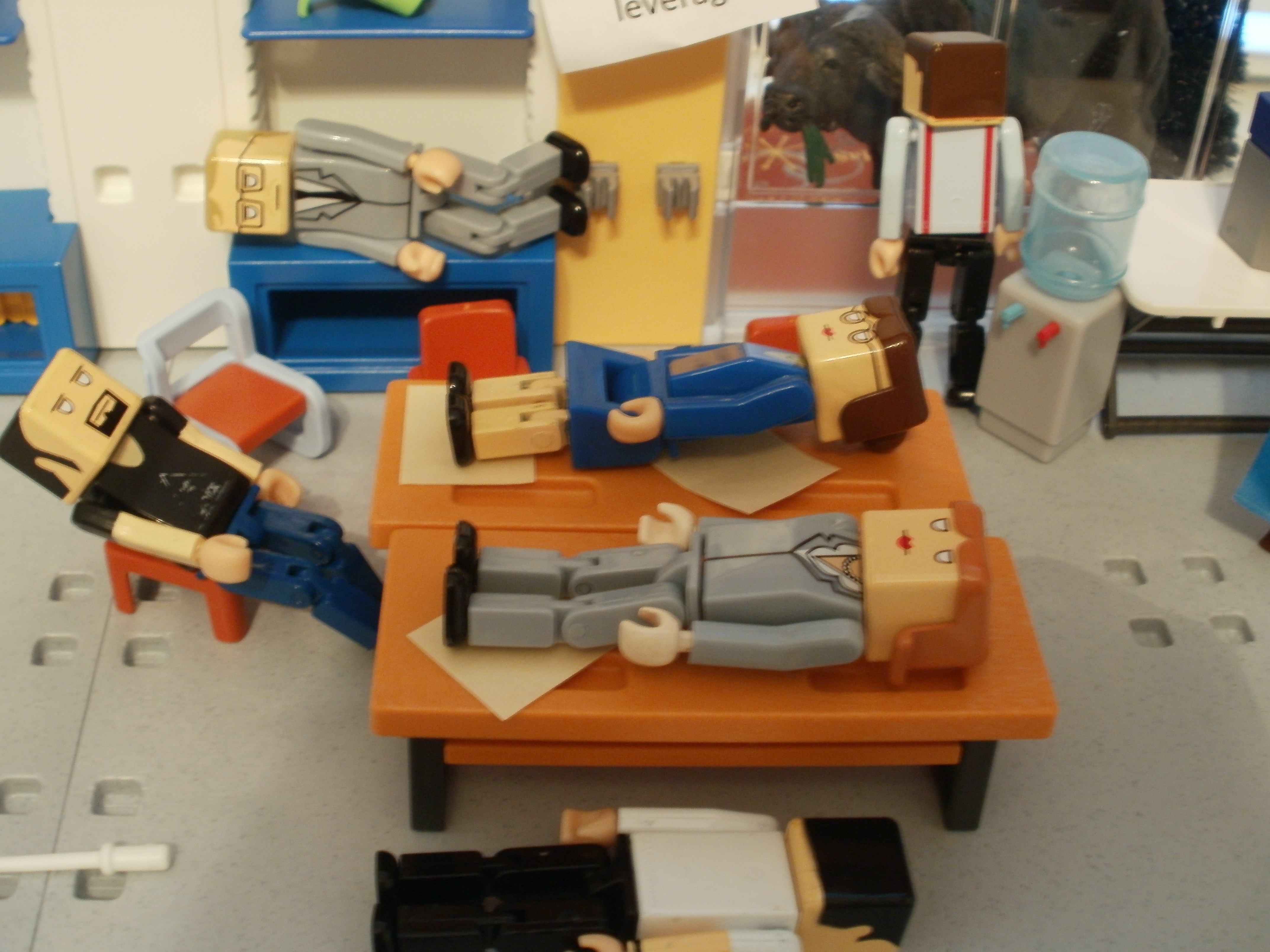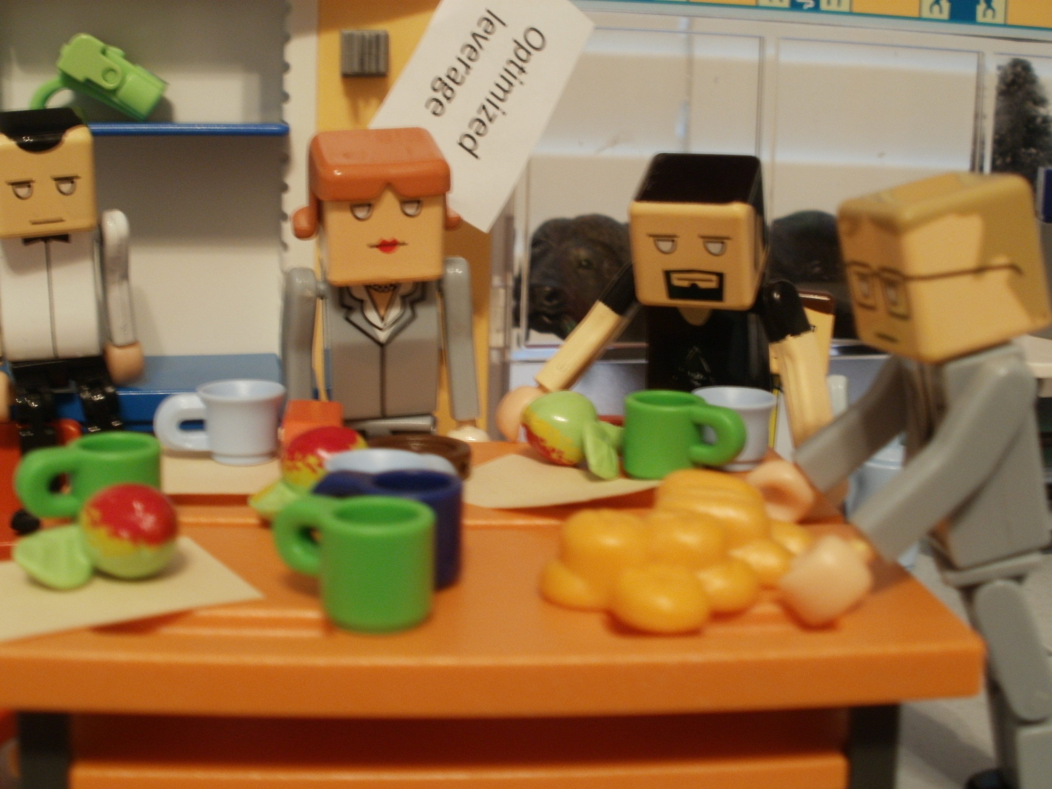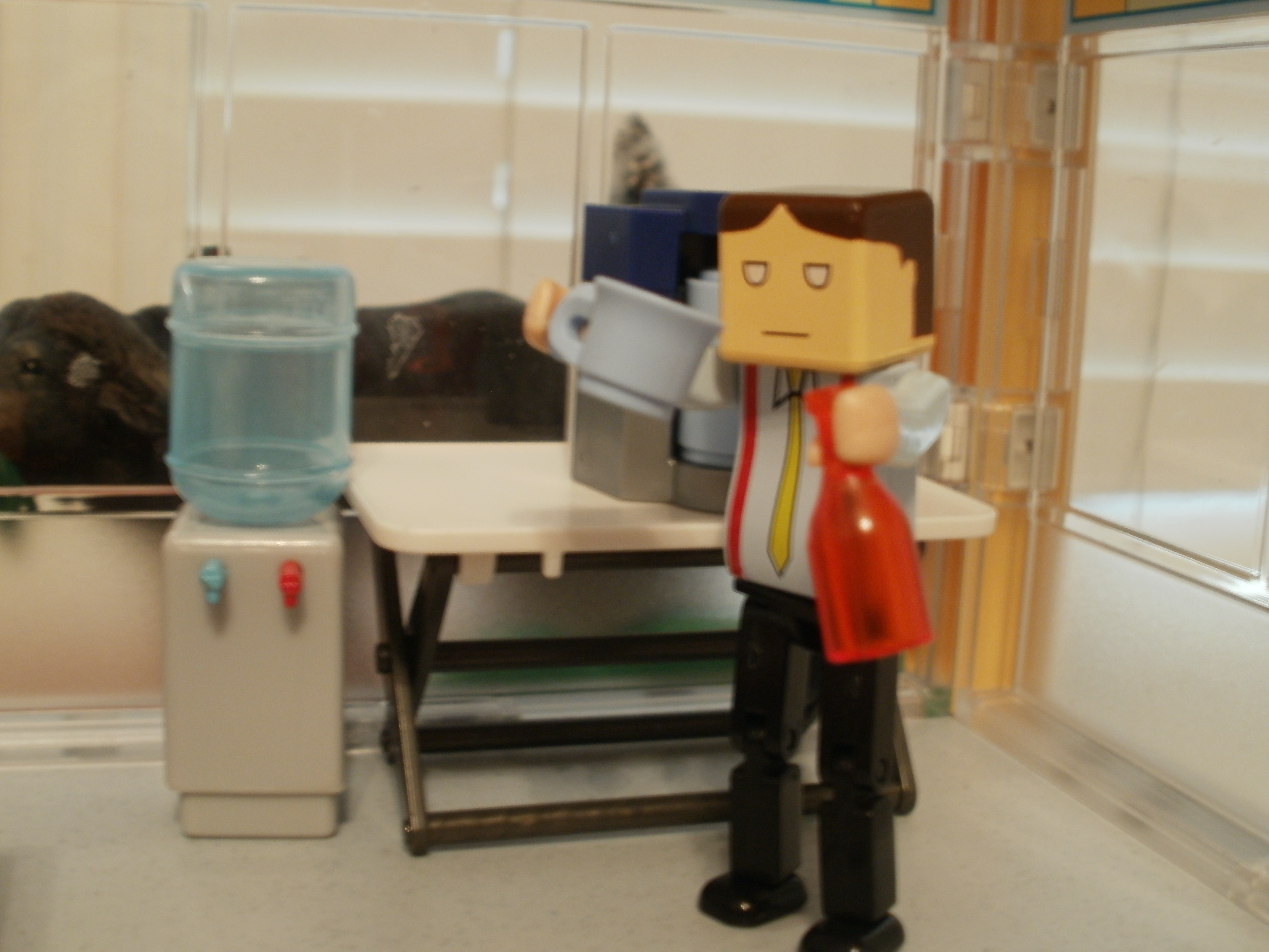 Meanwhile, Coach Kent could feel his caffeine high waning. He ordered the employees to perform a “Gap Analysis,” and report back to him. As they began discussing things, he darted over to the coffeemaker and downed another few cups. For good measure, he added a bottle of Red Bull.