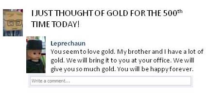 Then, as Bob scrolled down his page, he saw something shocking. It was the leprechaun. He had commented on one of “Bob’s” posts.