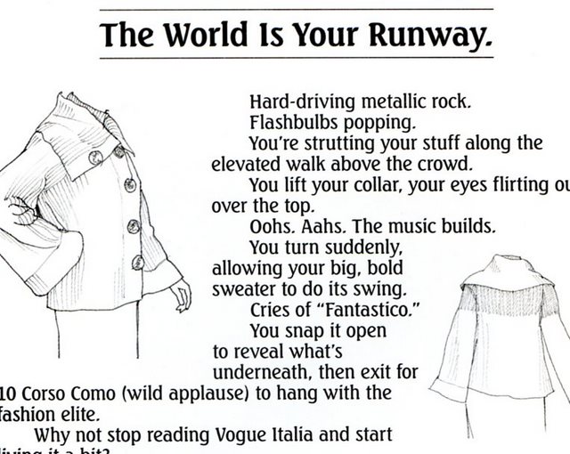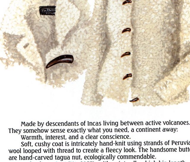 Gradually they realized they were looking at pages scanned from old clothing catalogs. Specifically, catalogs from The J. Peterman Company. There were things like this: