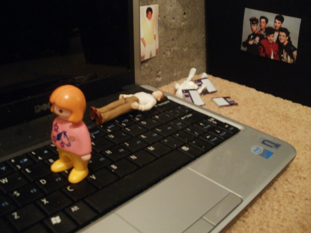 He landed, and moved about the keyboard, letting the NKOTB spirit guide him. Bobbie-Jo watched from the sidelines, impressed.