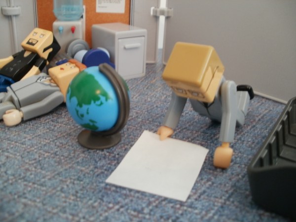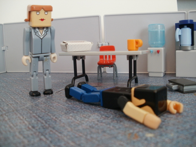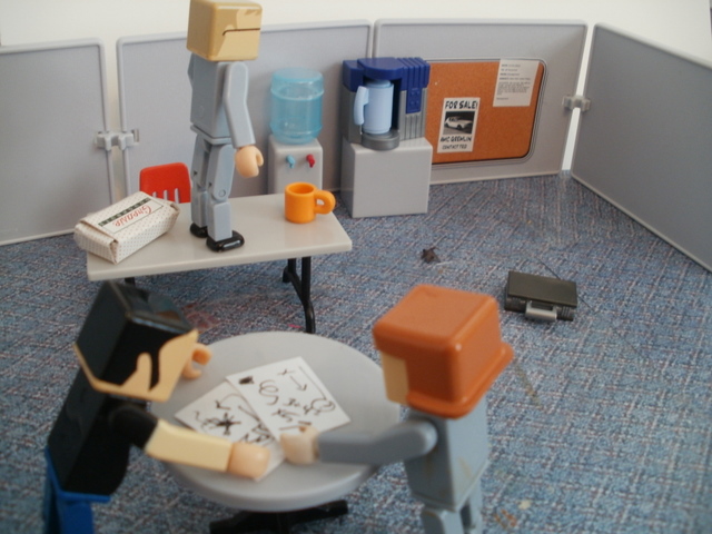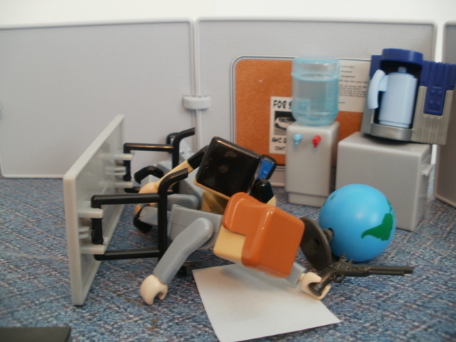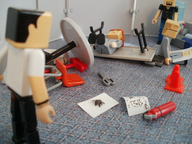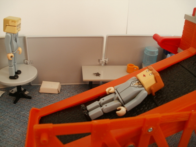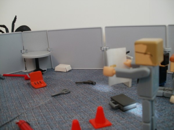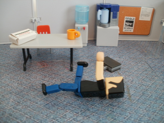 In the breakroom things were looking desperate. The ammunition was gone.