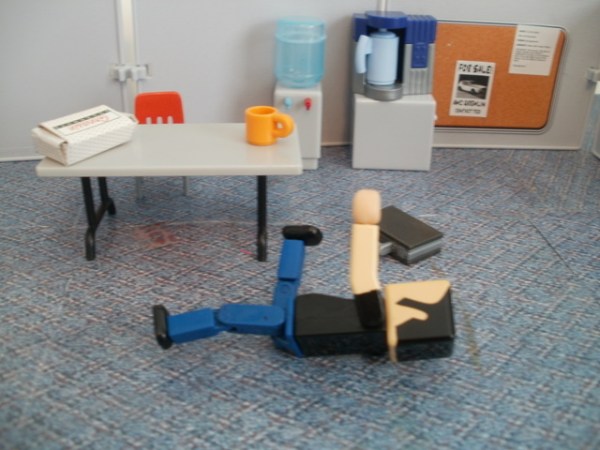 Meanwhile the warning shot ricocheted off the ceiling and came barreling toward Chachi’s cubicle. He was so engrossed in watching his aquarium he didn’t even notice the bullet whiz by.