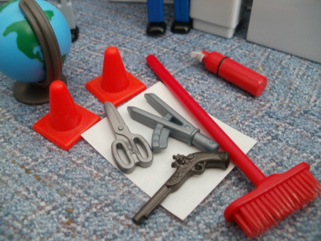 The globe seemed an odd choice, but the scissors, broom, compass, fire extinguisher and cones were good. And was that… a GUN? Sue and Derek didn’t even want to know where that came from.