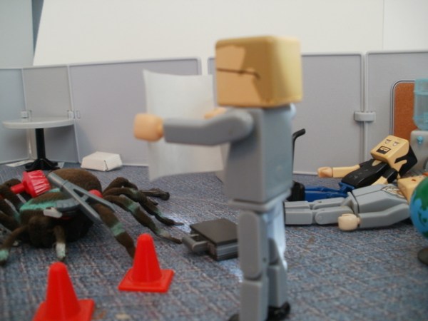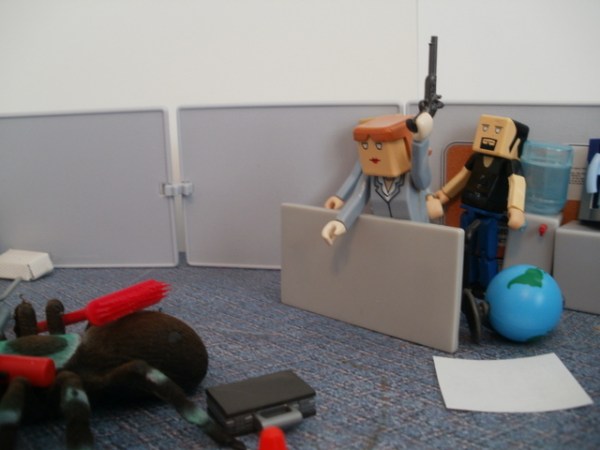 Sue and Derek got to work, sketching out plans to kill the spider without getting anywhere near it. Meanwhile, Bob was assigned “spider monitor.”