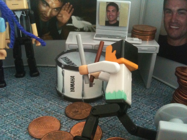 “My three band members play the bass guitar,” he yelled. “I am the drummer!”