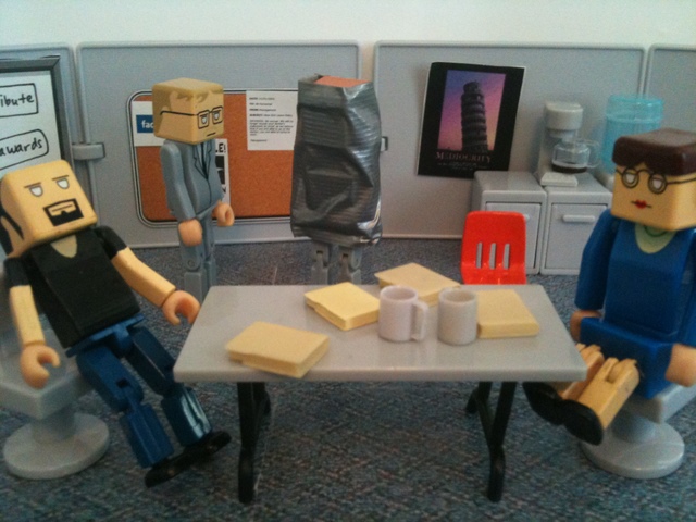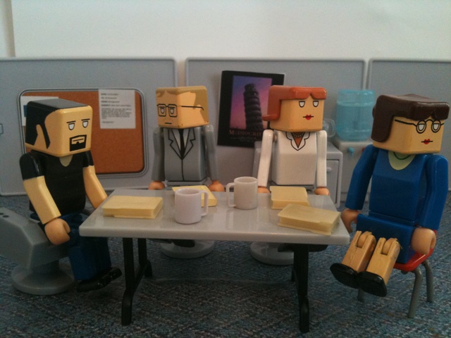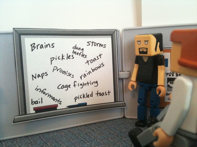 The staff gathered in the breakroom and assigned some roles. Bob would be in charge of Manufacturing. Ann would be in charge of Marketing. Sue would be in charge of Operational Excellence and Other Related Corporate Buzzwords. And Derek would have one of the most important jobs: Whiteboard eraser. Scoff if you will, but we learned the hard way that if no one is in charge of erasing the whiteboard, meetings spiral OUT OF CONTROL. Trust me.