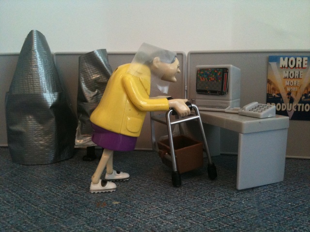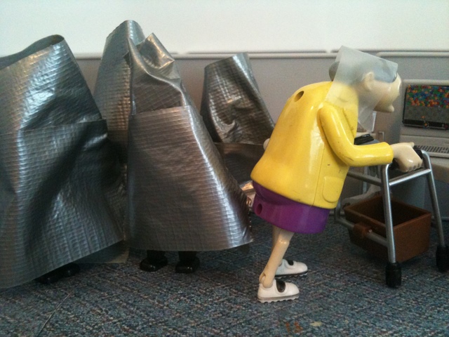 Then they stashed the two of them in Grandma Bernice’s cubicle.