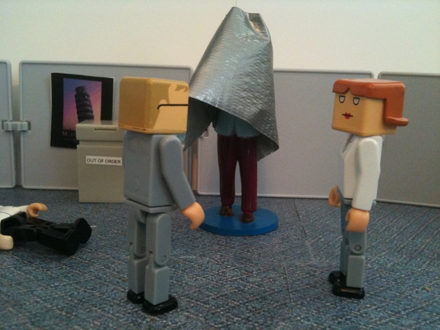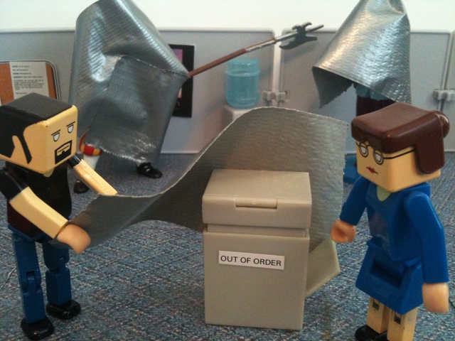 Ahh… it felt so good to just wrap their problems away. The employees looked around for other bothersome things. They decided to wrap the copy machine, since it was always out of order.