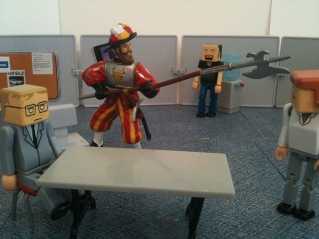 At one point, Charles from HR showed up in the breakroom. The minute the employees saw him, they knew he would be going into a cone. They didn’t even need to hear what he had to say. And indeed, as they began to wrap him he asked, “Where are the performance reviews you promised to complete last week?”