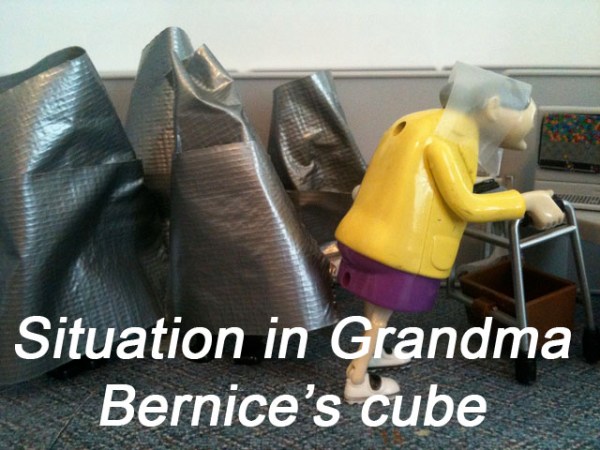 Then the employees took stock of their situation. They had to admit that it wasn’t great. Ted, his therapist and the investors were all trapped in Cones of Solitude in Grandma Bernice’s cube.