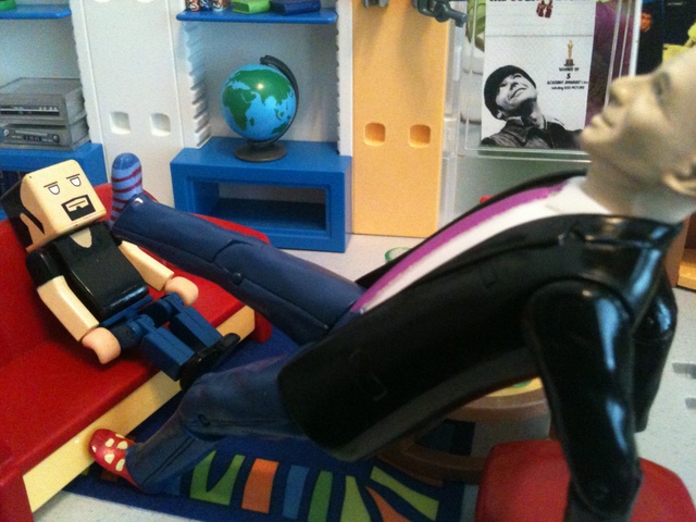 Dr. Neal stood up and bent down to Derek’s level. “Derek,” he said, “I am here to help you with your many, many issues. Together we will explore your deepest fears and dreams. I will be asking you very difficult questions. Questions that will seem too personal, but your honesty is essential. While you are here you will talk to me, you will draw pictures, you will journal, you will compose a heartfelt song or poem.”