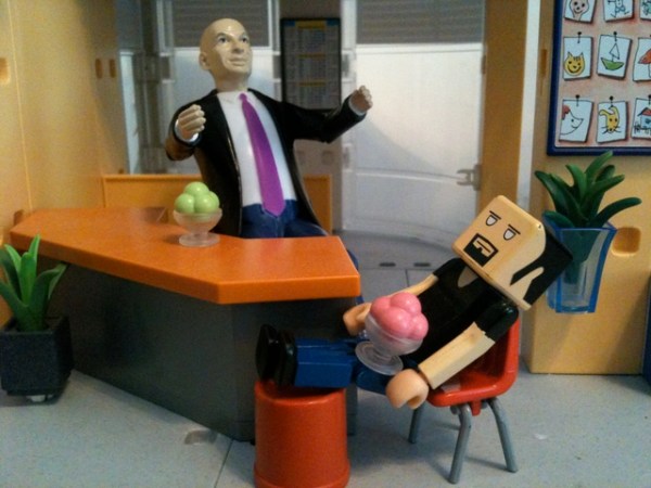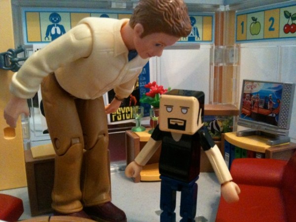 As you recall, Derek was ordered to complete a week of therapy following the “Cone of Solitude” debacle a few weeks ago. (His co-workers Bob and Ann are in therapy too, but today we focus on Derek.)