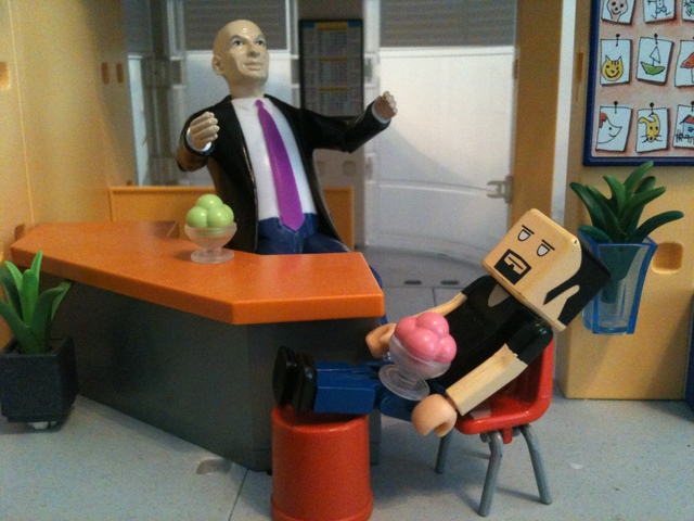 You may also recall that Derek’s therapist is a strange fellow who, as my friend Krista pointed out, looks a lot like Star Trek’s Captain Jean-Luc Picard.
