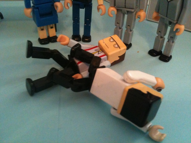 This wouldn’t have been a problem, except that Ted was moonwalking at an unusually high speed, and could not course-correct. He knocked Coach Kent to the ground, then — tragically — he went down as well.