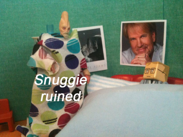 Bob raised his hand and said that he, too, bought a Snuggie from an infomercial. It was a polka-dot one from the “Snuggie Designer” collection. He loved it, but it had been ruined by his crazy therapist/ski instructor, as loyal readers will recall.