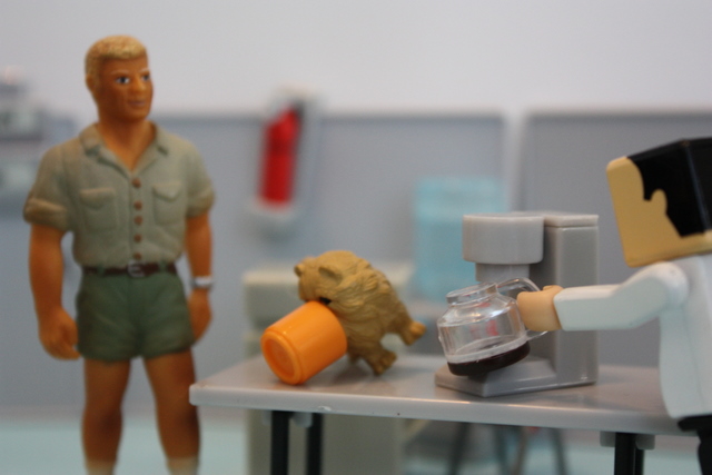 Later, everyone ended up back in the breakroom. Ann tried to pitch her screenplay.
