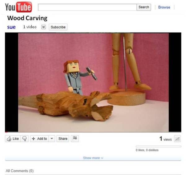 Briefly, Sue wondered if her “Wood Carving” video had gone viral on You Tube.