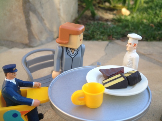 Moments later, the cafe owner appeared. “That gentleman ordered twelve pieces of cake and did not pay,” he informed Sue. “At $6.00 per piece, that’s a total of…”