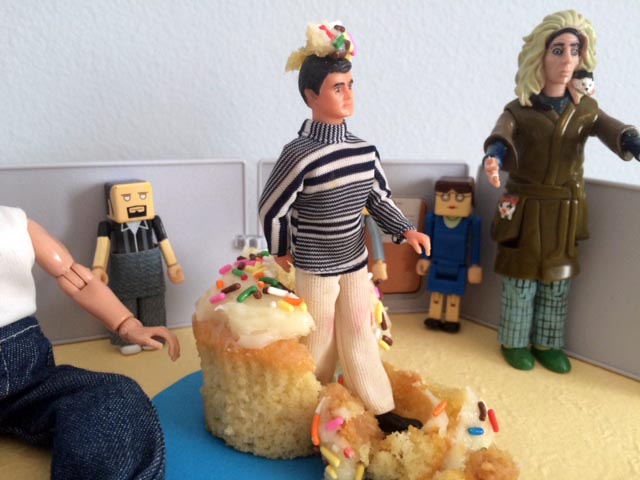 Just when we thought, “Hey, maybe this party planner isn’t so bad,” a man appeared. FROM INSIDE THE CAKE.