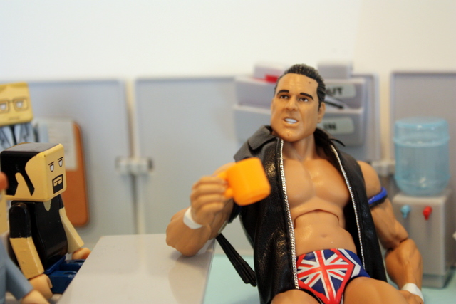 During the coffee break Sweet Cheeks grabbed Derek’s coffee and started guzzling it down. This was very upsetting to Derek. You see, Derek has this whole complicated thing he does with his coffee. He uses lots of special ingredients, a milk foamer, a food processor and a blow torch.